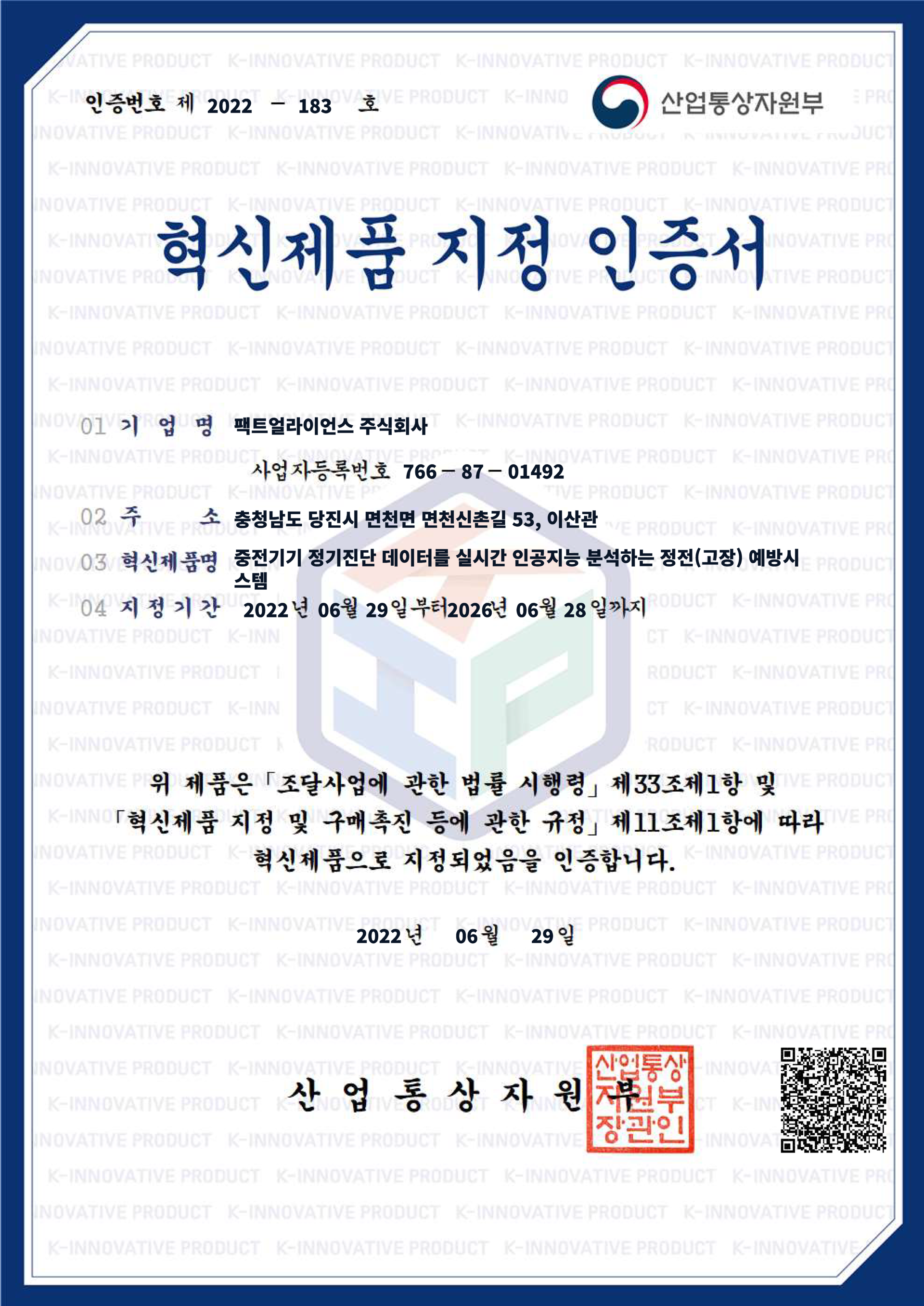 Innovative product designation(KR)